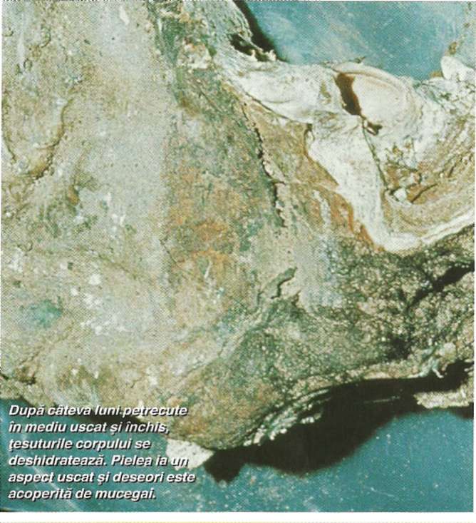 Ţesturile moi ale corpului dispar în interval de unul până la doi ani, după care rămân doar scheletul şi uneori adiopoceară.