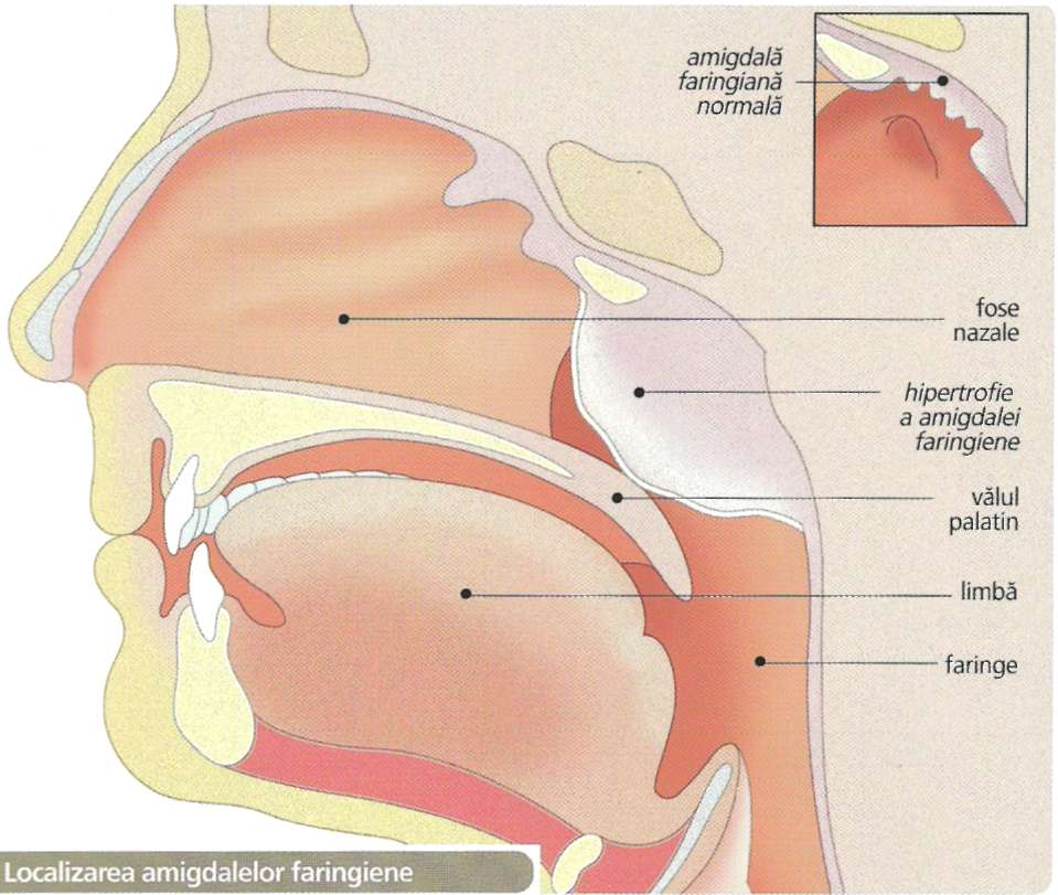 faringiene, situate în partea cea mai profundă a foselor nazale, ele fiind denumite vegetaţii adenoide atunci când sunt inflamate.
