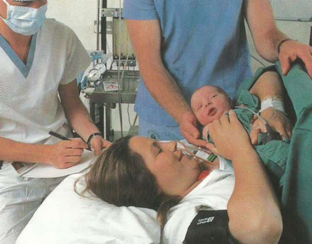 Odată administrat anestezicul, domnul Mason a fost lăsat să intre în sala de operaţie, îmbrăcat în echipament steril. El a rămas pe parcursul întregii operaţii, pentru a asigura sprijin moral şi a fi martor la naşterea bebeluşului.
