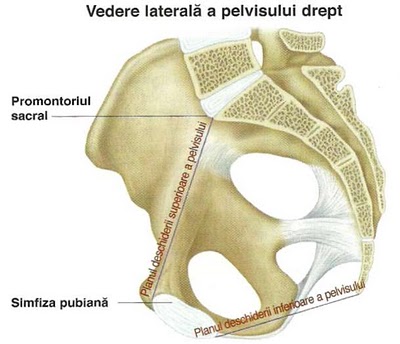 Canalul pelvin este delimitat în faţă de simfiza pubiană şl de sacru şi coccis în partea posterioară. în timpul naşterii, coccisul basculează în spate, pentru a facilita trecerea fătului.
