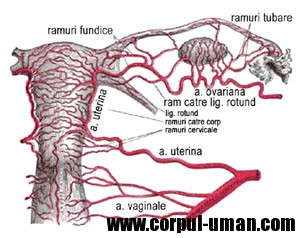 Patrunde prin ligamentul suspensor al ovarului si apoi in mezoovar, unde se anastomozeaza cu ramul ovarian din artera uterina. Prin aceasta anastomoza se formeaza o arcada arteriala in mezoovar, in dreptul marginii anterioare a ovarului.