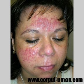 1. Tipul eritemato-telangiectatic: se caracterizeaza prin inrosirea faciala centrala, adesea insotita de senzatia de arsura la nivelul pielii. Eritemul ocoleste, de cele mai multe ori, regiunile perioculare bilateral.